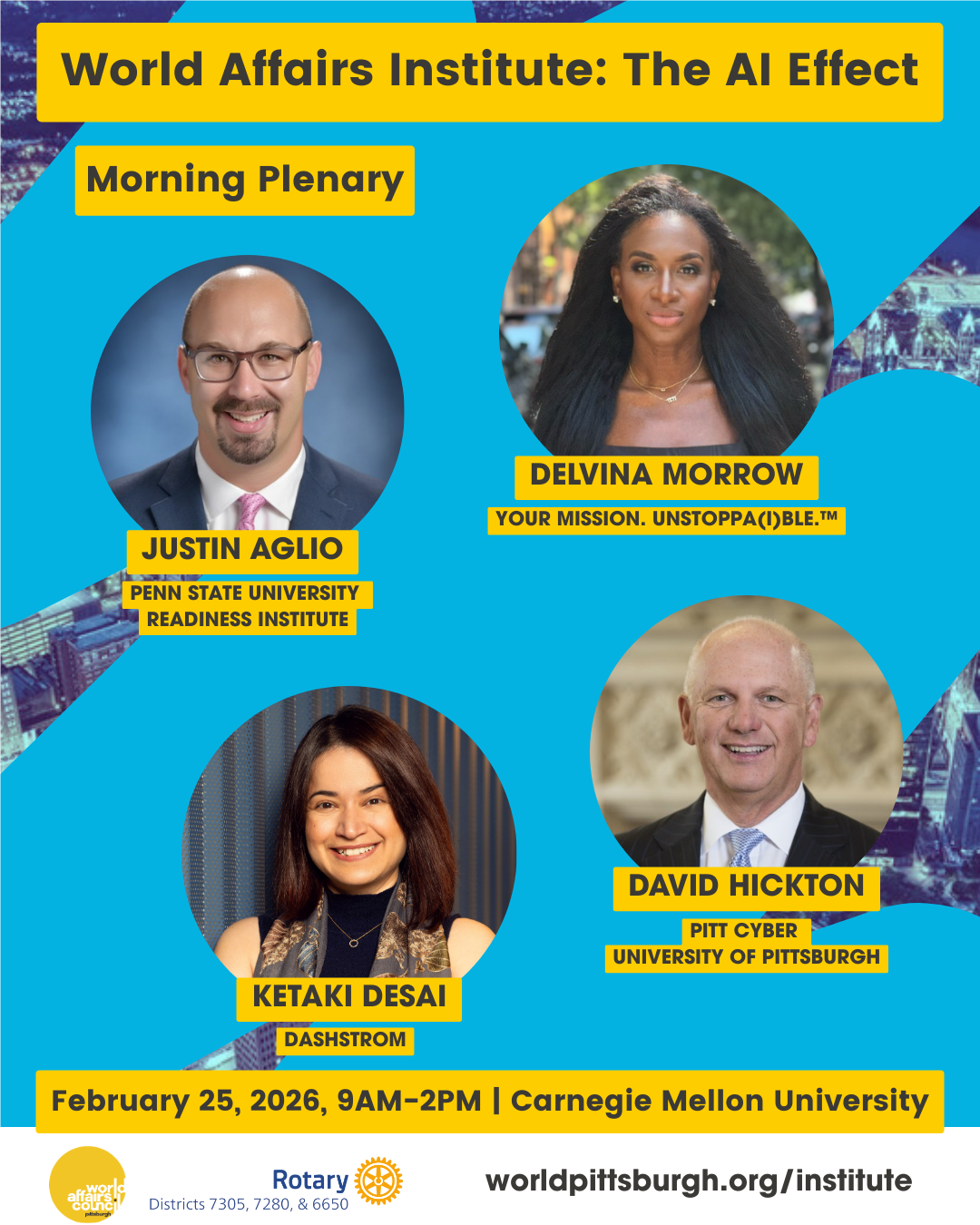 There is 1 week left to register your Interact Club or local high school group for the 55th Annual World Affairs Institute: The AI Effect on February 25, 2026 at Carnegie Mellon University.