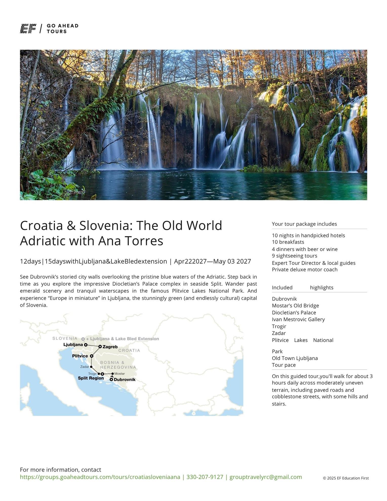 Main Tour dates (Croatia & Slovenia): 4/22/27 - 5/3/27