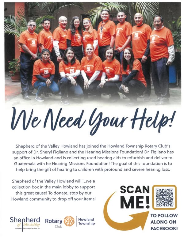 The Howland Rotary Club and Shepherd of the Valley are supporting Dr. Sheryl Figliano of Howland and the Hearing Missions Foundation by collecting used Hearing Aids.