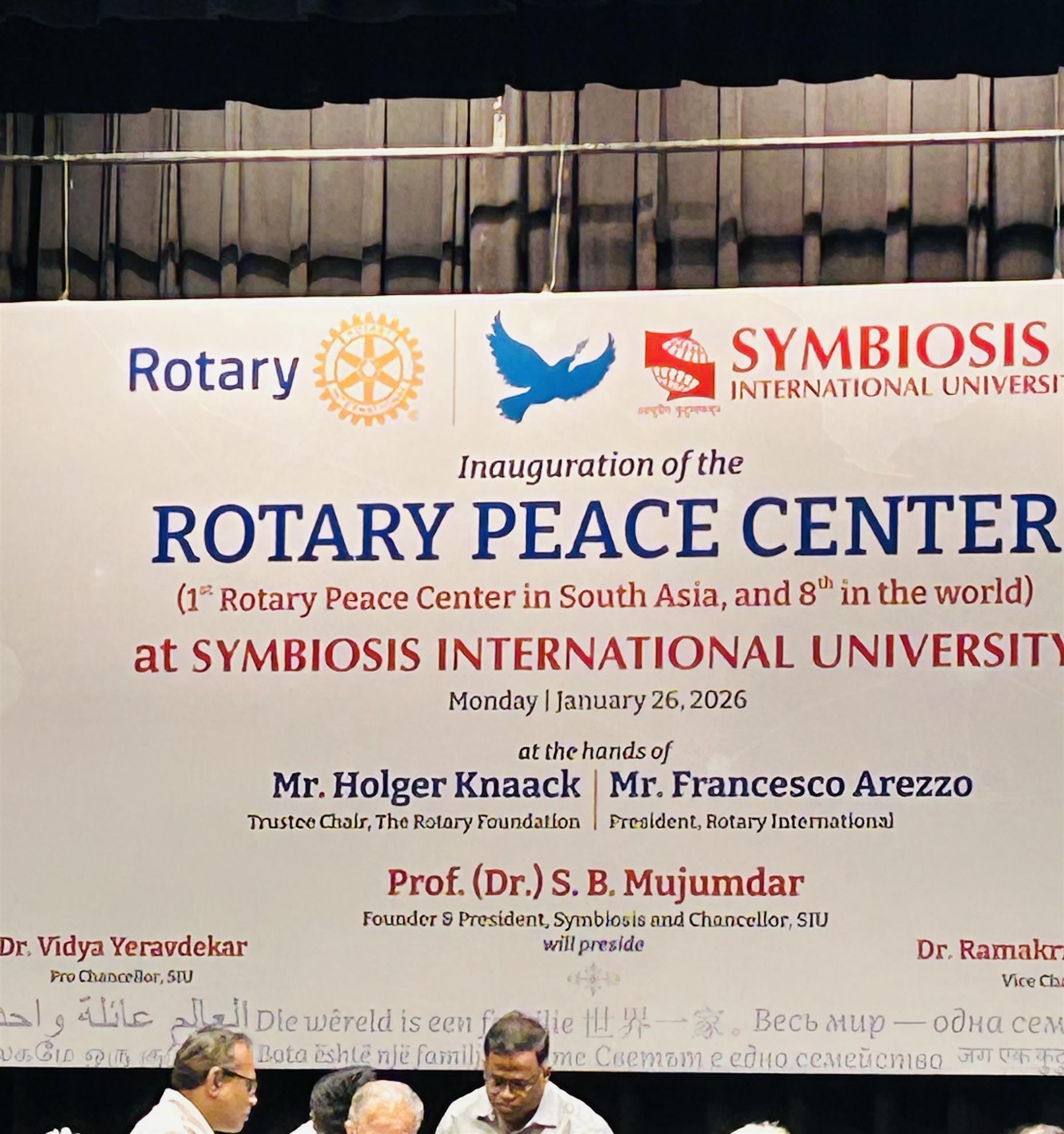Rotary has announced a new Rotary Peace Center at Symbiosis International University in Pune, India.