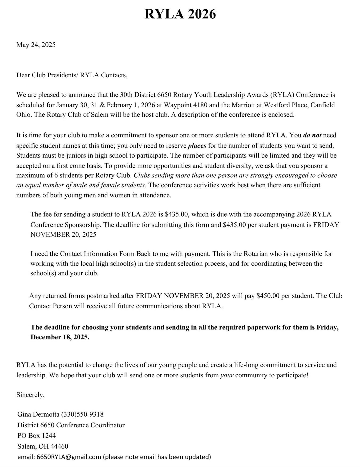 We have exciting news for district 6650! It is my honor to announce that Ryan Boyce has been named the 2025-2026 District Governor Elect.