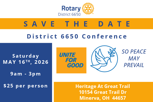 SAVE THE DATE!   District 6650 Conference Slated for Saturday May 16th, 2026